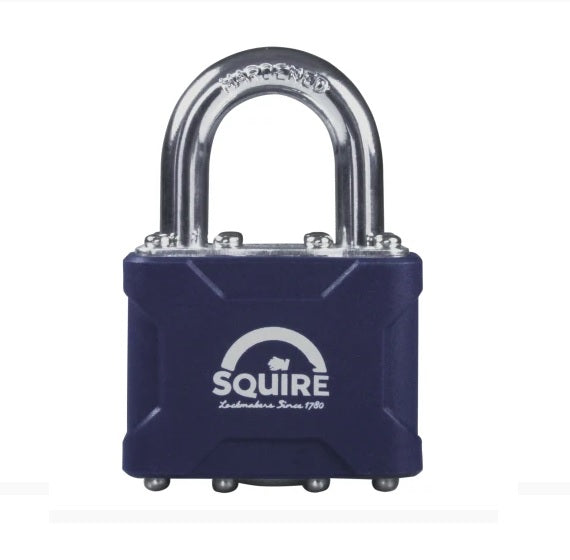 The Squire Stronglock Laminated Padlocks are a medium to high security durable padlock, with a hardened steel shackle with a covered steel padlock body with anti corrosion finish. The 4-pin tumbler lock mechanism gives over 1,000 key variations.
